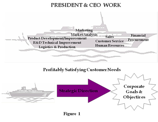In order to illustrate this let’s look at the role of a President or a CEO. Figure 1 below depicts a company as a “ship” that is led by a President or a CEO.